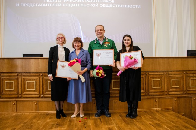 Вручили награды первый заместитель губернатора Челябинской области Ирина Гехт и министр образования и науки Челябинской области Александр Кузнецов . Благодарственных писем Минпросвещения РФ были удостоены 52 южноуральца, среди них – педагоги, советники директора по воспитанию и взаимодействию с детскими общественными объединениями, муниципальные координаторы и сотрудники ресурсного центра проекта «Навигаторы детства», представители родительской общественности и некоммерческих организаций.