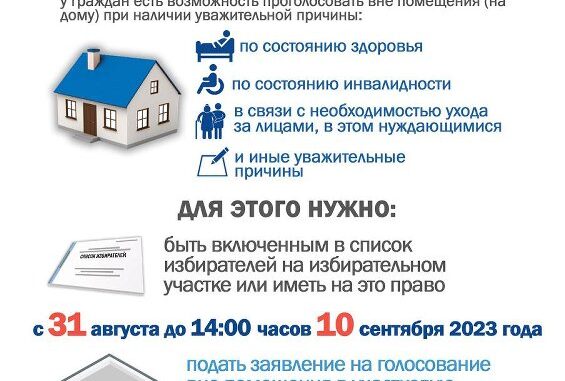 Если по уважительной причине (по состоянию здоровья, инвалидности, в связи с необходимостью ухода за лицами, в этом нуждающимися, и иным уважительным причинам, не позволяющим прибыть в помещение для голосования) избиратель не сможет прийти на избирательный участок в единый день голосования, у него есть возможность проголосовать вне помещения для голосования – на дому.