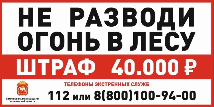 «В преддверии второй половины майских праздников хочу напомнить,что в период действия особого режима все штрафы за нарушение правил пожарной безопасности в лесу увеличиваются вдвое. На граждан административный штраф может достигать 50 тысяч рублей, это не считая ущерба, нанесенного лесному фонду. Основной причиной возникновения пожаров остаётся человеческий фактор, поэтому именно от нас с вами зависит как пройдут предстоящие выходные», — сказал и.о. начальника Главного управления лесами Челябинской области Валерий Нигматуллин.
