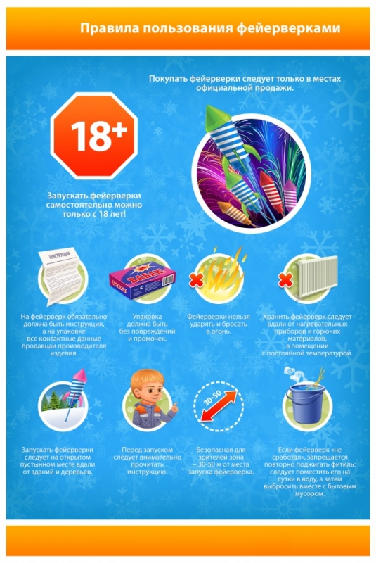 Соблюдайте правила при безопасности при использовании пиротехнических изделий.