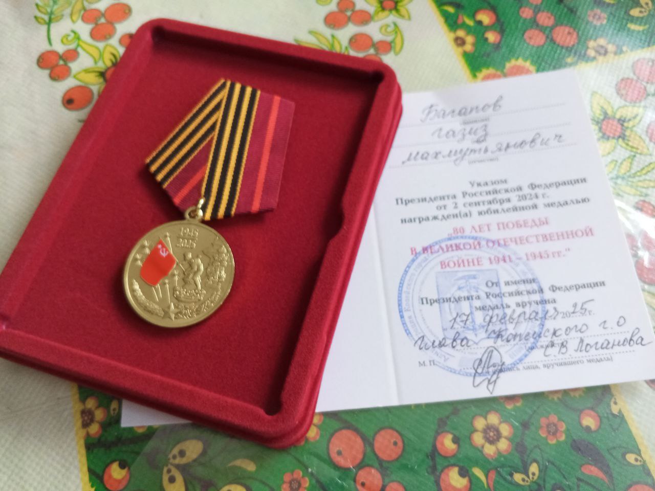 17 февраля Глава Копейского городского округа Светлана Логанова вручила юбилейные медали от имени Президента Российской Федерации «80 лет Победы в Великой Отечественной Войне 1941-1945 гг.