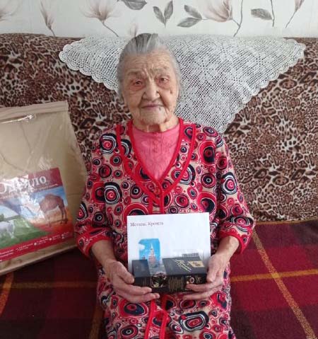 С юбилеем Нину Федоровну Хлопину поздравили заместитель руководителя УСЗН Е. В. Трегубова, которая вручила юбилярше поздравление от Президента РФ Владимира Путина, и представители районного и поселкового совета ветеранов.