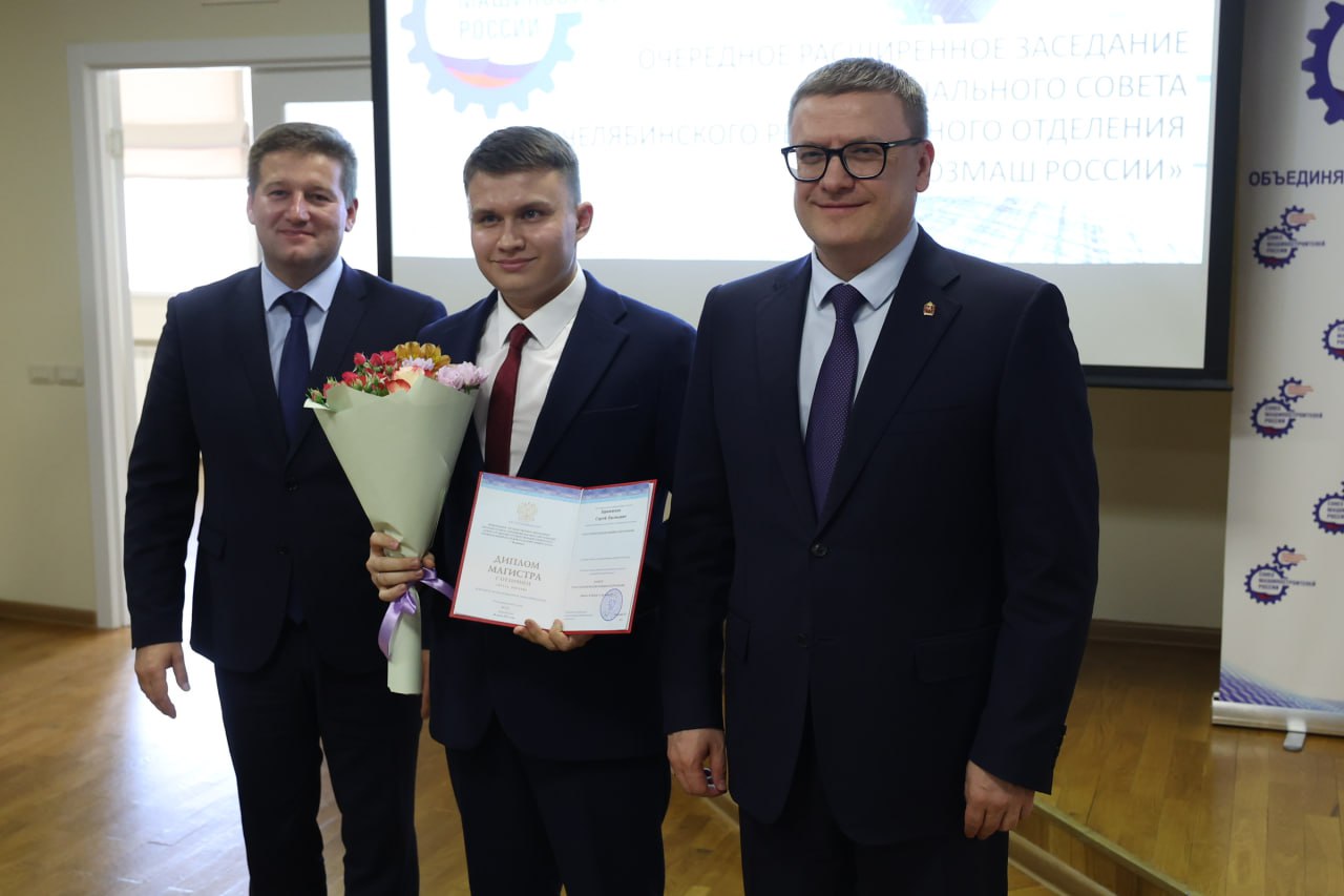 Губернатор Челябинской области Алексей Текслер и ректор Южно-Уральского государственного университета Александр Вагнер вручили дипломы молодым инженерам – выпускникам-целевикам, а