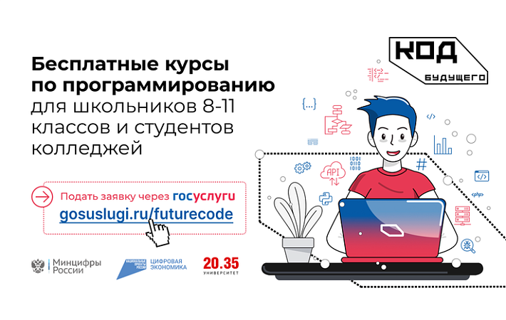 На портале «Госуслуги» школьникам и студентам колледжей стали доступны бесплатные курсы по программированию. Занятия будут проходить онлайн или оффлайн на специальных региональных учебных площадках в рамках проекта «Код будущего» нацпроекта «Цифровая экономика».