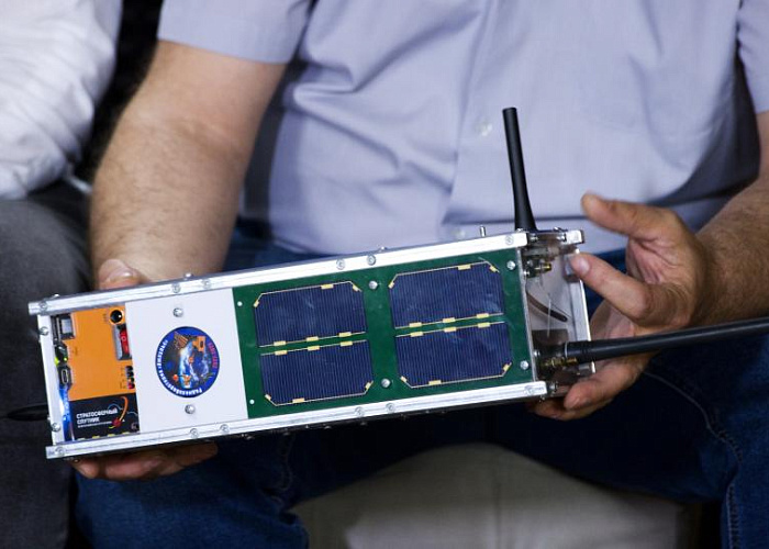 Евгения Волик Его отправка приурочена к юбилею города Старшеклассник и педагог показали, как работает космический аппарат.