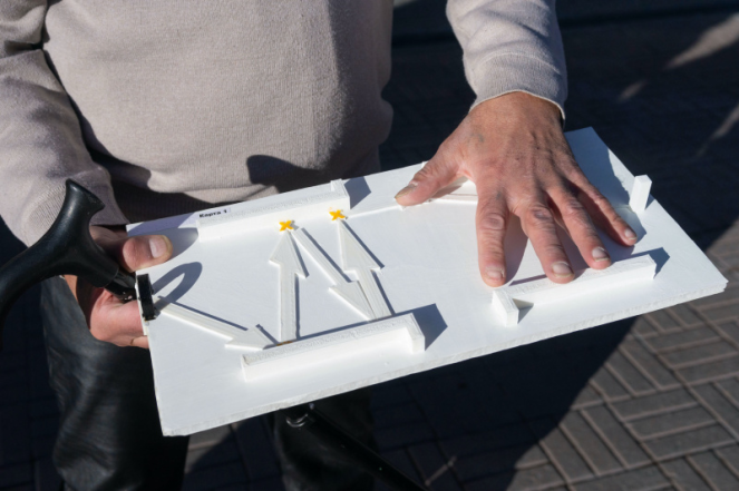 Первым делом участников знакомят с историей Кировки, затем дают задания и тактильную карту, чтобы понять, как будет выстроен маршрут. Прочитать ее смогут даже люди с сильными нарушениями зрения. Карта напечатана на 3D-принтере.