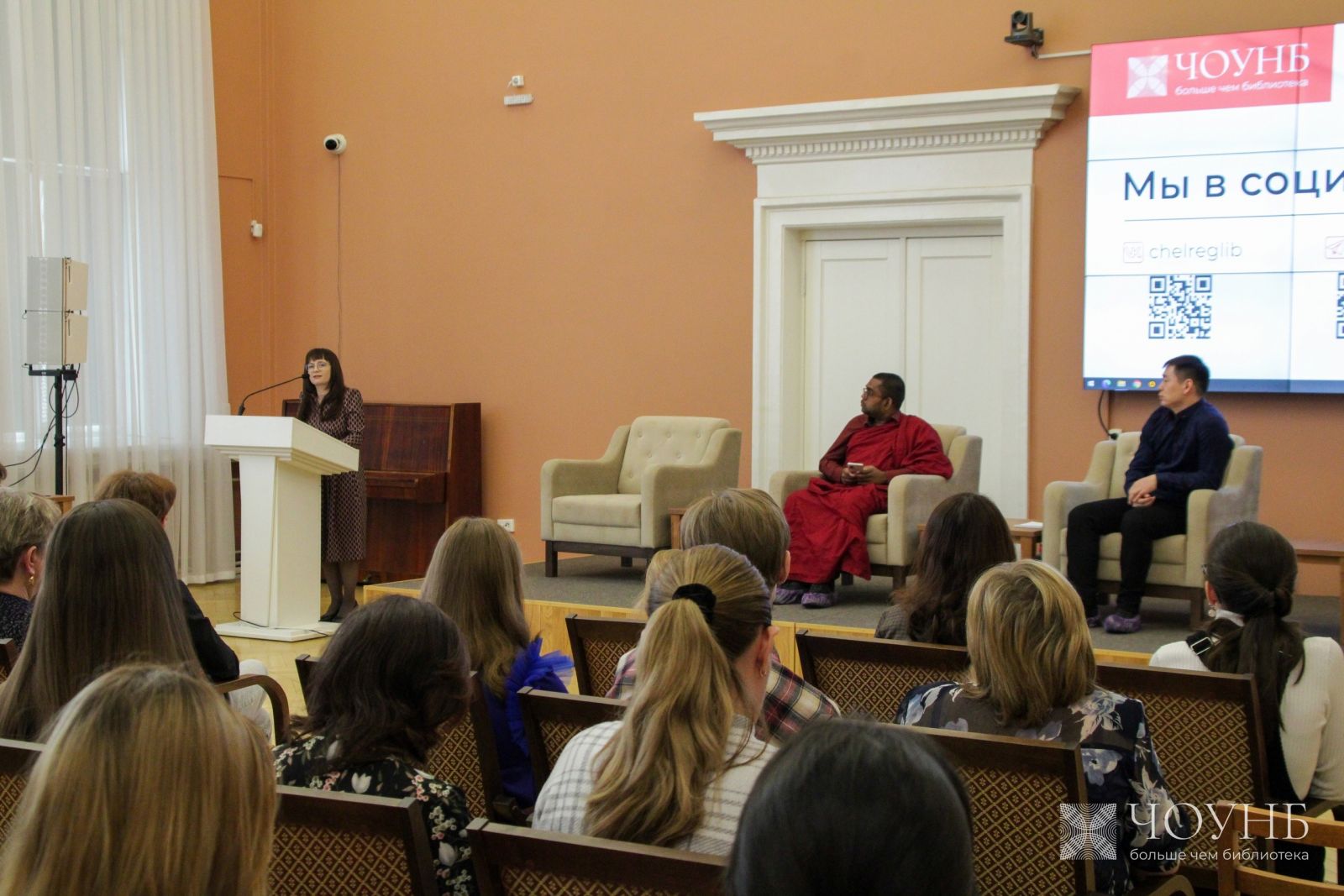 в Челябинской областной универсальной научной библиотеке в целях повышения квалификации педагогических работников, повышения этнокультурного образования и воспитания школьников Мария Раевская, доцент кафедры лингвистики и перевода, кандидат филологических наук прочитала публичную лекцию «Да будет честь и слава нашему языку…» (Н.М. Карамзин). В лекции было рассказано об истории развития русского языка, о его взаимодействии с культурой, о роли русского языка как средства межнационального общения в нашей стране и о его значении в современном мире.
