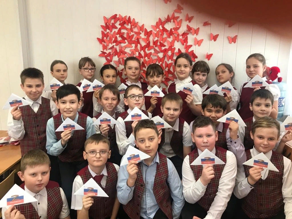 Учащиеся начальных классов МОУ СОШ № 45, воспитанники МДОУ №48 написали письма и сделали поздравительные открытки с Днём защитника Отечества бойцам, участвующих в СВО.