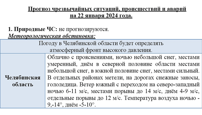 Согласно поступившей оперативной информации, на территории Челябинской области вечером 21 января ожидается резкое ухудшение погодных условий, кое-где пойдет сильный снег: за 12 часов может выпасть от 6 до 19 мм осадков, что составляет от 18 до 124% от месячной нормы.