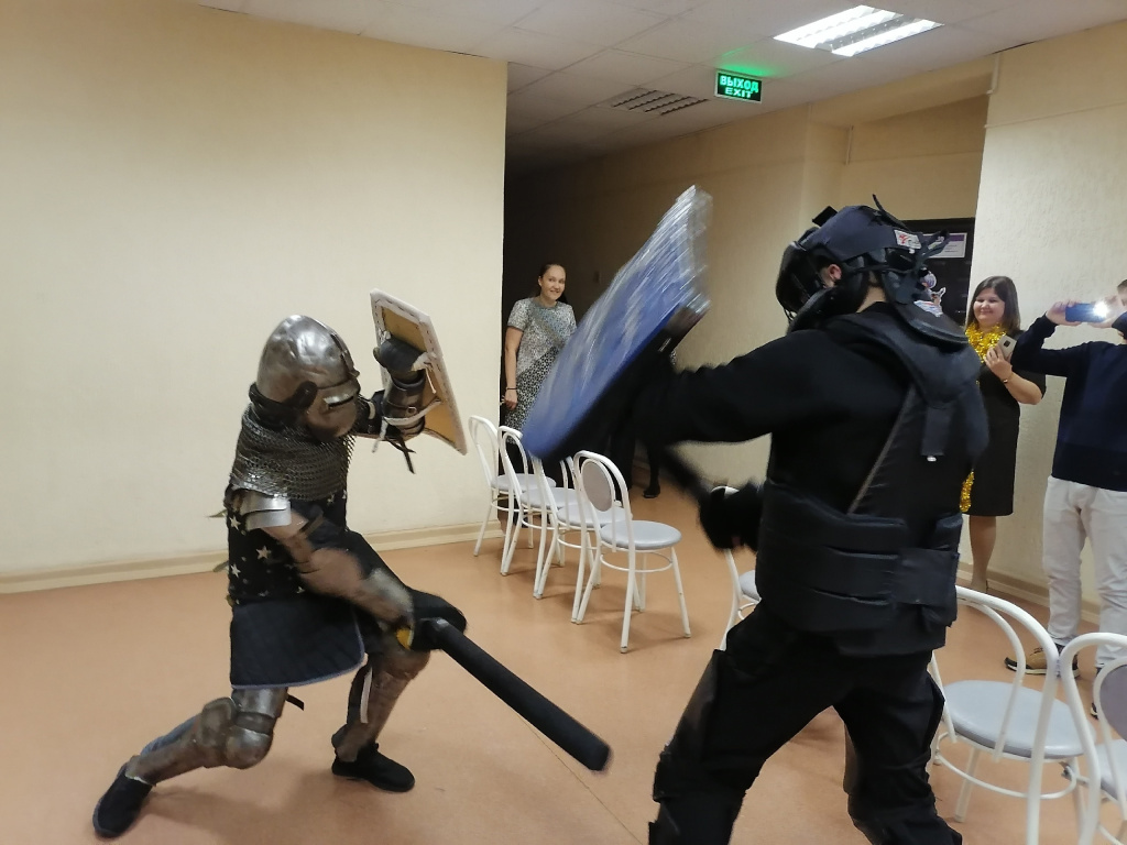Бои были активными, эмоциональными и очень опасными для хрупкого школьного интерьера. Были моменты, когда приходилось вставать с щитами между поединщиками и окнами.