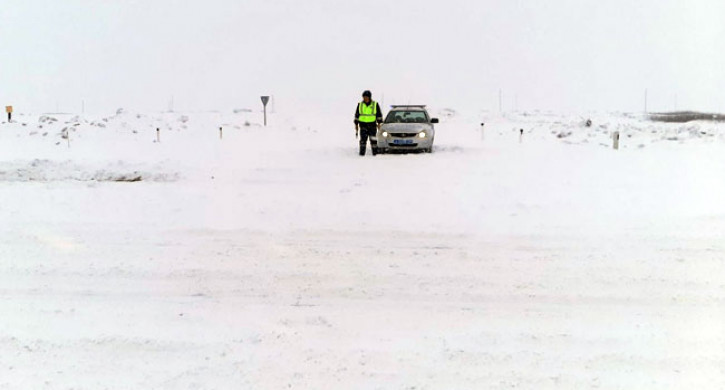 Сообщается, что на всем протяжении указанного отрезка наблюдаются сильный ветер и низовая метель, идет обильный снегопад. Из-за этого ограничена видимость.