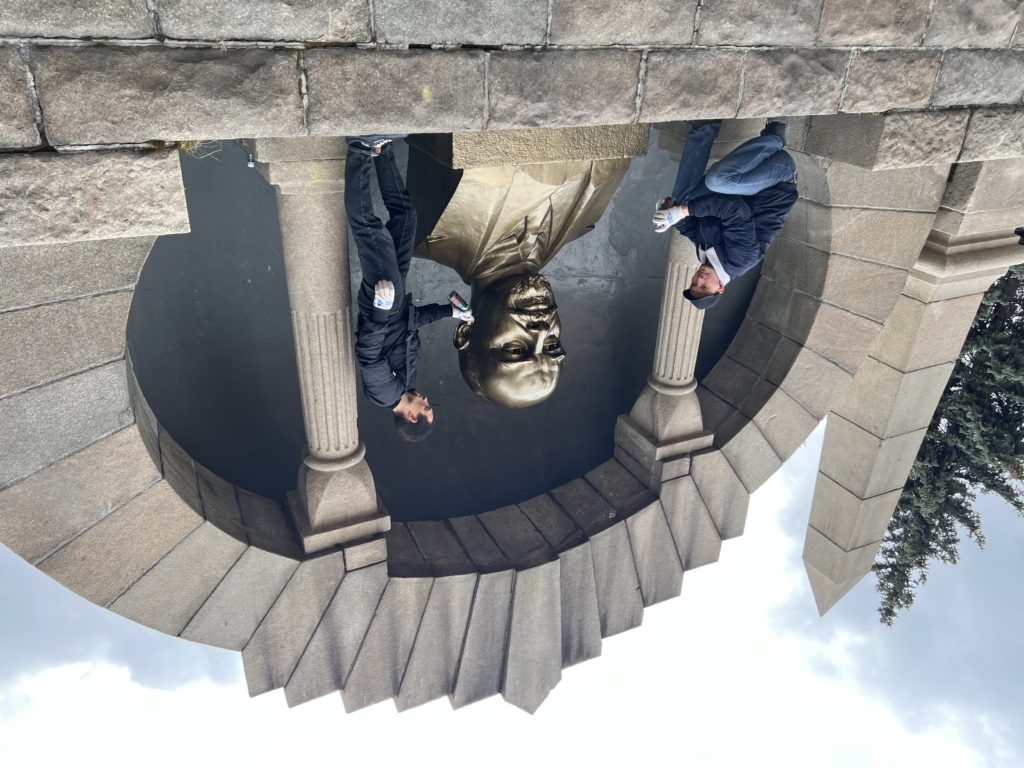 Коммунисты традиционно привели в порядок и покрасили новой бронзовой краской памятник-мавзолей Владимиру Ильичу.