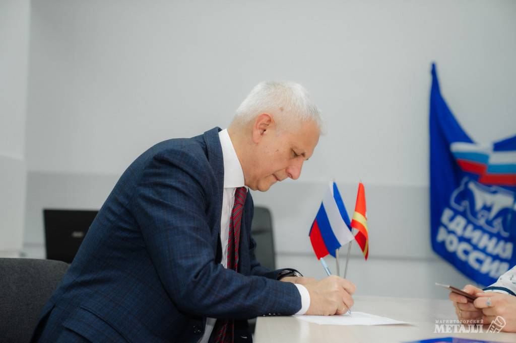 Сергей Бердников заполнил подписной лист в поддержку само-выдвижения Владимира Путина на выборы главы государства.