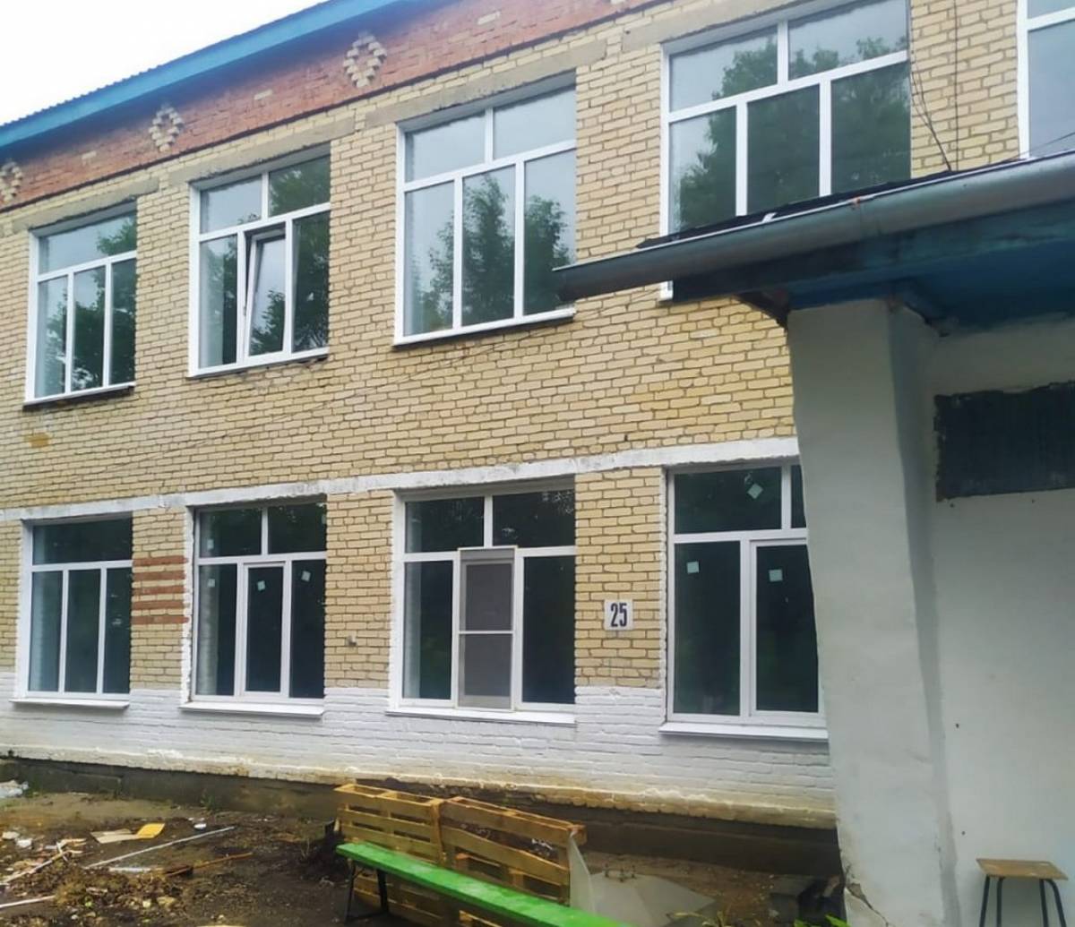 Здание школы построено 60 лет назад и имеет значительный износ. В рамках капитального ремонта в школе выполнены следующие виды работ: демонтаж и монтаж оконных блоков, демонтажные работы на 2 этаже всех дверных блоков и демонтаж пола 2 этажа. На первом этаже идет подготовка стен к оштукатуриванию, ведется разбор деревянных полов классных комнат и спортивного зала. Сумма контракта составила чуть больше 24,5 миллионов рублей. Работы планируется завершить до 30 сентября этого года.