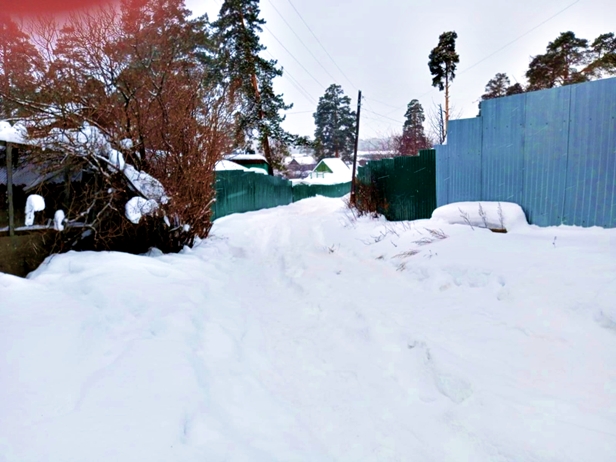Это метров триста. Снега по колено. Благо взяли с собой лопату. У калитки пришлось расчищать завал минут пять. Потом дорожку, чтобы добраться до входа в дом.