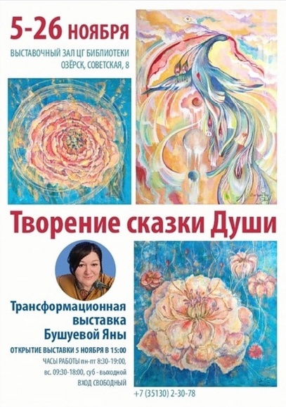 5 ноября в 15:00 в выставочном зале Центральной городской библиотеки состоится открытие персональной выставки Яны Бушуевой "Творение сказки души".