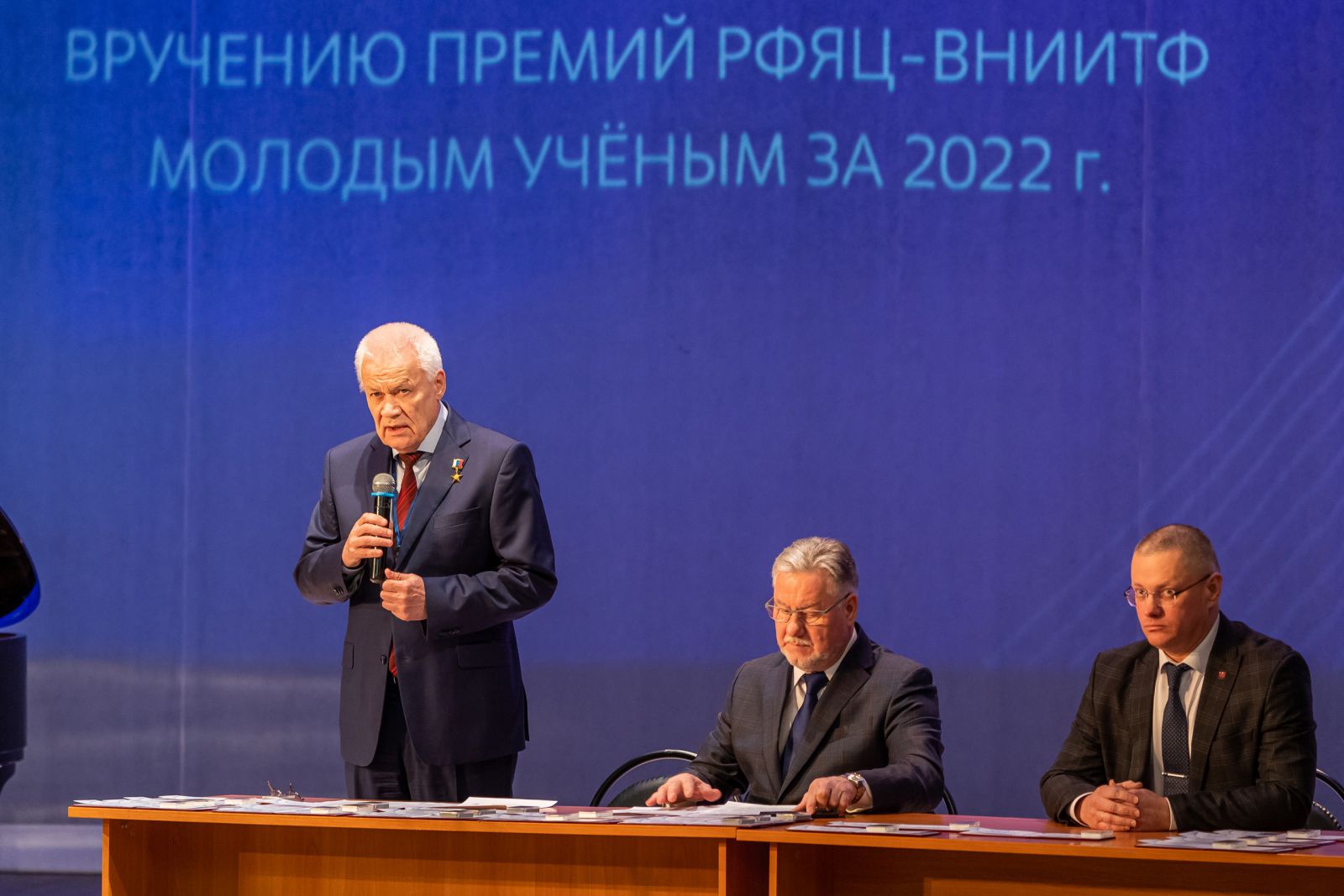«Сегодня юбилейное заседание Научно-технического и технического советов ядерного центра: премии, предложенные Е.Н. Аврориным, вручаются молодым ученым и специалистам уже в 25-й раз, – сказал научный руководитель РФЯЦ–ВНИИТФ Георгий Рыкованов, открывая торжественную церемонию. – Премии учреждались с тем, чтобы они стали стимулом на пути молодежи в науку и технику. По существу, так и получилось. Уже почти 500 человек получили это признание, из них только в 2022 г. трое успешно защитили докторские диссертации и один – кандидатскую. Из пяти сотрудников, получивших премию Правительства РФ в области науки и техники, два – лауреаты премий РФЯЦ–ВНИИТФ предыдущих лет. Это свидетельствует о том, что участие в конкурсе выполняет свои функции по подготовке молодых специалистов».