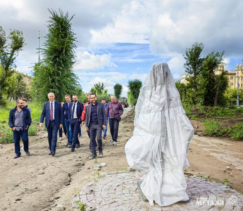 Глава города Сергей Бердников побывал на объекте и подвёл промежуточный итог благоустройства. К преображению общественного пространства приступили в апреле и планировали завершить максимум первого сентября. Однако затяжные дожди, переходившие в ливни, не позволили продвигаться по плану. Теперь, стараясь наверстать, подрядные организации ударно используют каждую «сухую» минуту. Готовятся даже заступать в ночные смены.