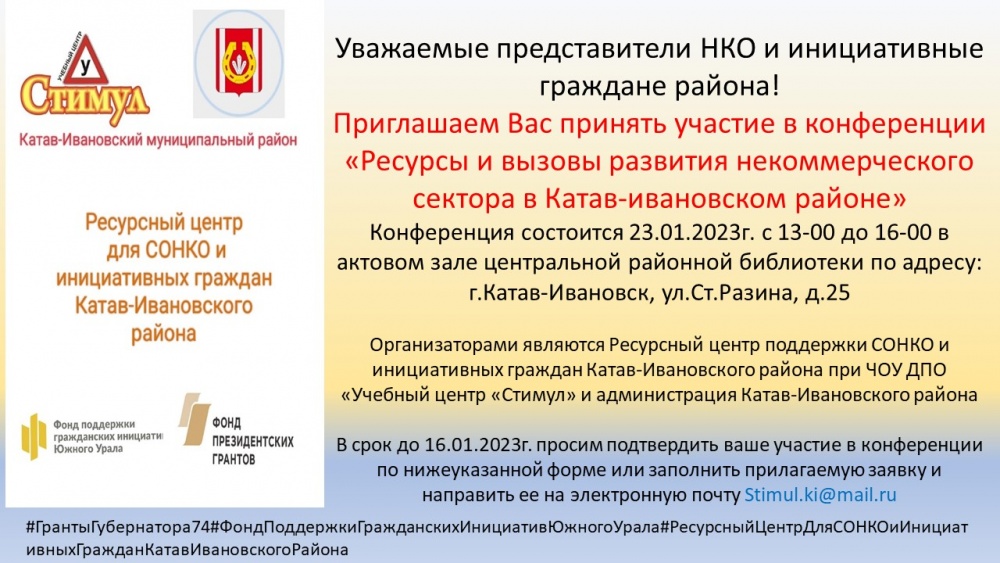 Приглашаем Вас принять участие в конференции «Ресурсы и вызовы развития некоммерческого сектора в Катав-Ивановском районе».