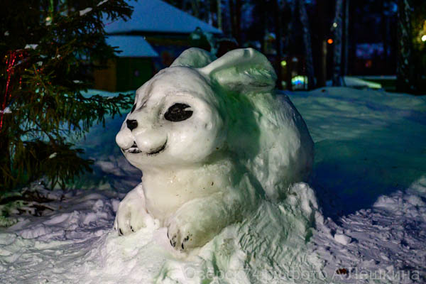 Этой зимой в детском парке появился чудесный снежный кролик. Символ наступившего года заметно больше своих собратьев по дикой природе, что не мудрено, а озерчане стараются сфотографироваться с симпатичной застывшей зверушкой.