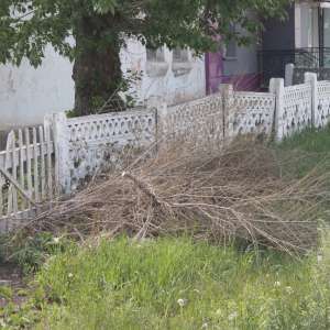 В тот раз нам пожаловались жители на мешки, оставленные возле дороги после субботников. Приехали на место. Мешков нет, убраны и большие кучи веток, лишь в одном месте лежат несколько спиленных веток, которые, видимо, оставили на потом.