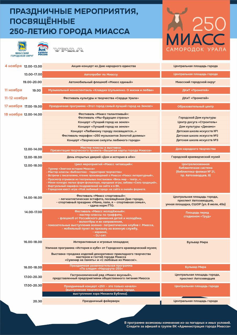 Миассу — 250! Афиша мероприятий к юбилею города