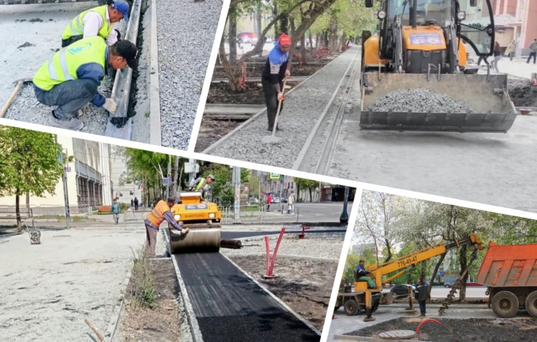 На пешеходной зоне в центре Челябинска начали асфальтировать велодорожки и обустраивать газоны
