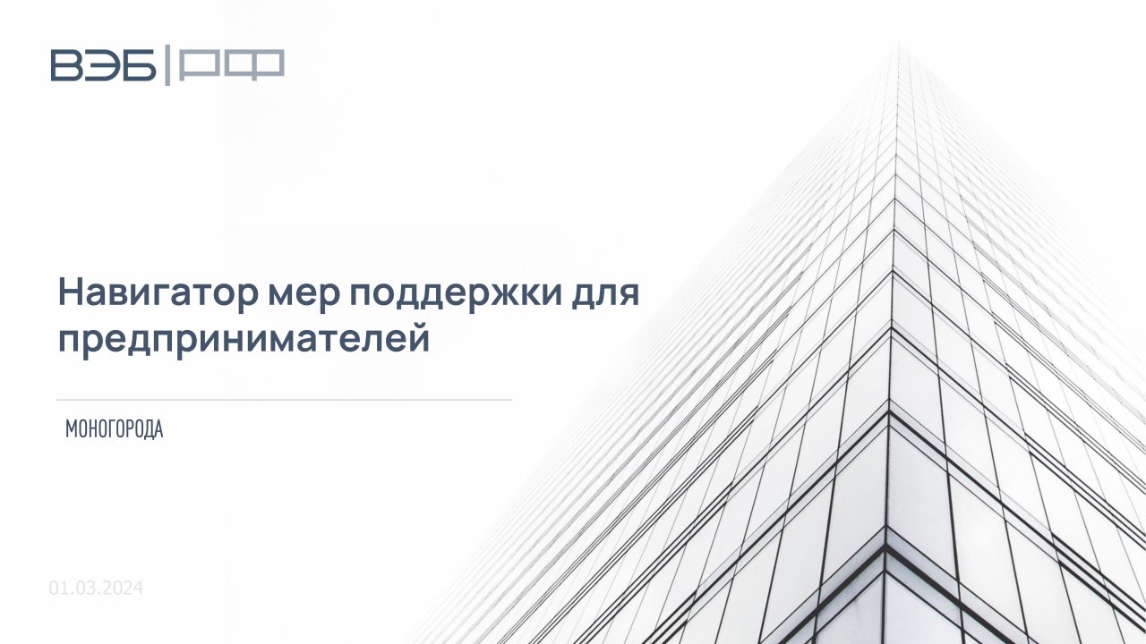Предлагаем предпринимателям Трехгорного ознакомиться с актуализированными мерами поддержки моногородов, представляемыми ВЭБ.РФ, Корпорацией МСП, МСП Лизинг,