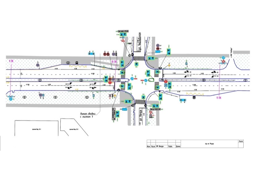 Согласно новому плану, при движении по проспекту Мира от улицы Забабахина и улицы Широкая произойдут изменения в распределении полос движения на данном перекрестке. Ранее схема организации движения предполагала, что автомобили могут двигаться по левой полосе - прямо и налево, а по правой полосе - прямо и направо.