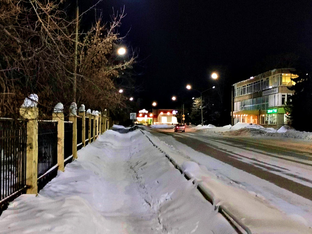 Нагребли с обеих сторон снега на ограждение, его уже совсем не видать. А ещё и на тропинку, видимо, с дороги досталось. Ещё парочка снегопадов, и пешеходы будут ходить вровень с крышами проезжающих мимо автомобилей.