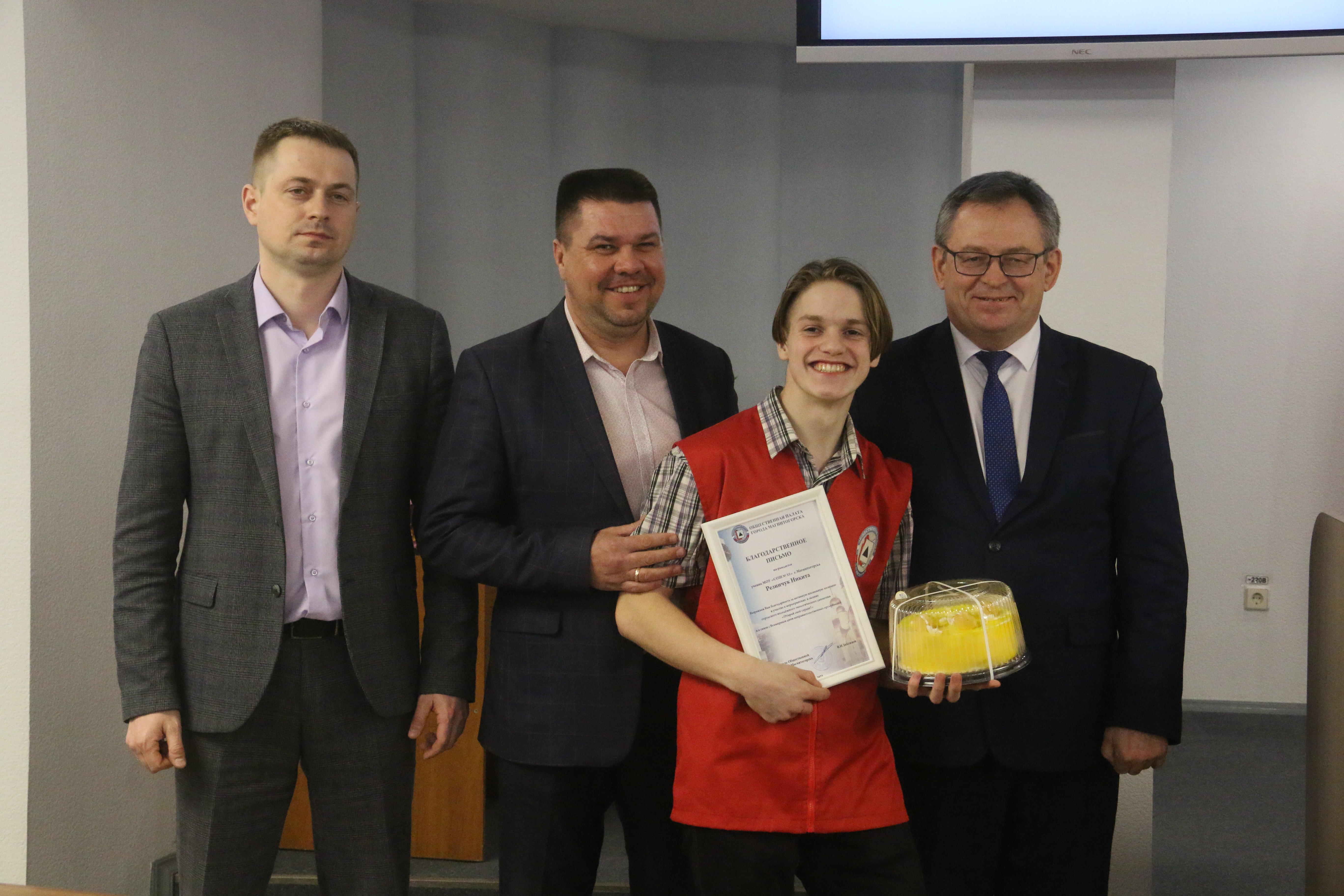 Началось заседание с торжественной части. Сперва председатель Общественной палаты Магнитогорска Владимир Зяблицев наградил благодарностями и подарками волонтеров экологического движения «Открой свое сердце!» за активную жизненную позицию и активное участие в мероприятиях молодежного движения. Далее Владимир Иванович вручил благодарности руководителям социально ориентированных некоммерческих организаций за значимый вклад в общественную жизнь города. Также представителей НКО поблагодарили управление социальной защиты населения администрации города и Магнитогорское городское Собрание депутатов.