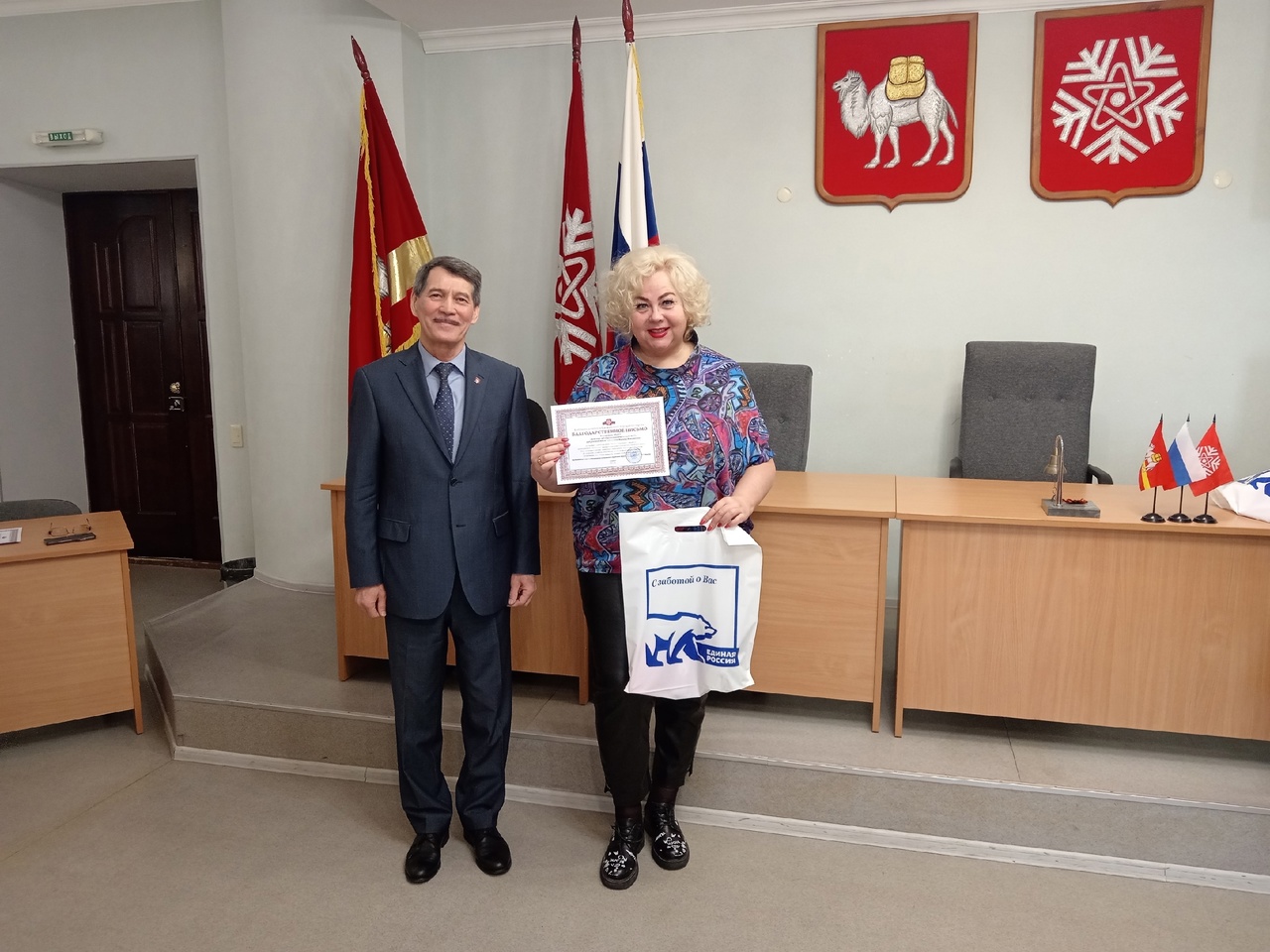 С приветственными словами к снежинским активистам обратился заместитель председателя Собрания депутатов Снежинска Марат Рифкатович Ягафаров. Благодарностями и сувенирами от Женского движения коллективы награждены детские сады № 7, 24, 26, 27, 30, 31, школы № 122, 126, 127; Комплексный центр социального обслуживания населения и волонтеров.