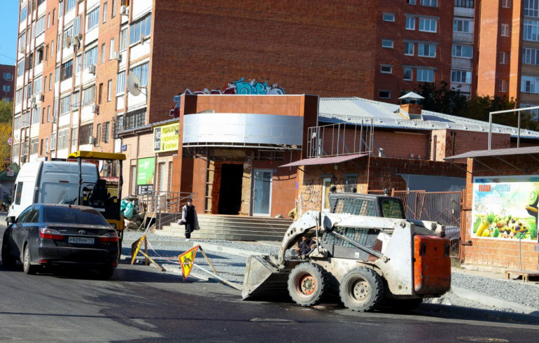 Однако и сейчас работы — невпроворот. Предстоит как минимум заасфальтировать тротуары и восстановить газоны. На улице по-прежнему работает техника. Кое-где она занимает парковку для автомобилей. Пешеходам приходится обходить места незаконченного ремонта стороной.