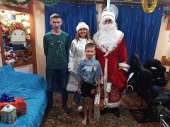 Управляющий делами администрации округа Татьяна Мировчикова перевоплотилась в образ снегурочки и вместе с настоящим Дедом Морозом поздравили с наступающими праздниками семью Ражетдиновых.