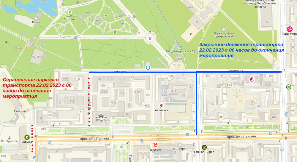 В среду, 22 февраля, в центре Челябинска перекроют движение из-за проведения праздничного митинг-концерта «Слава защитникам Отечества» .