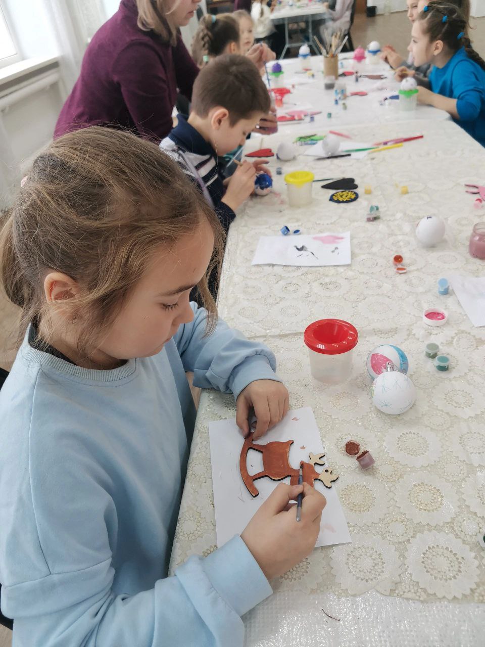 В Доме культуры имени Лермонтова поселка Октябрьский Копейского городского округа прошел замечательный мастер-класс для детей и взрослых по росписи елочных игрушек.