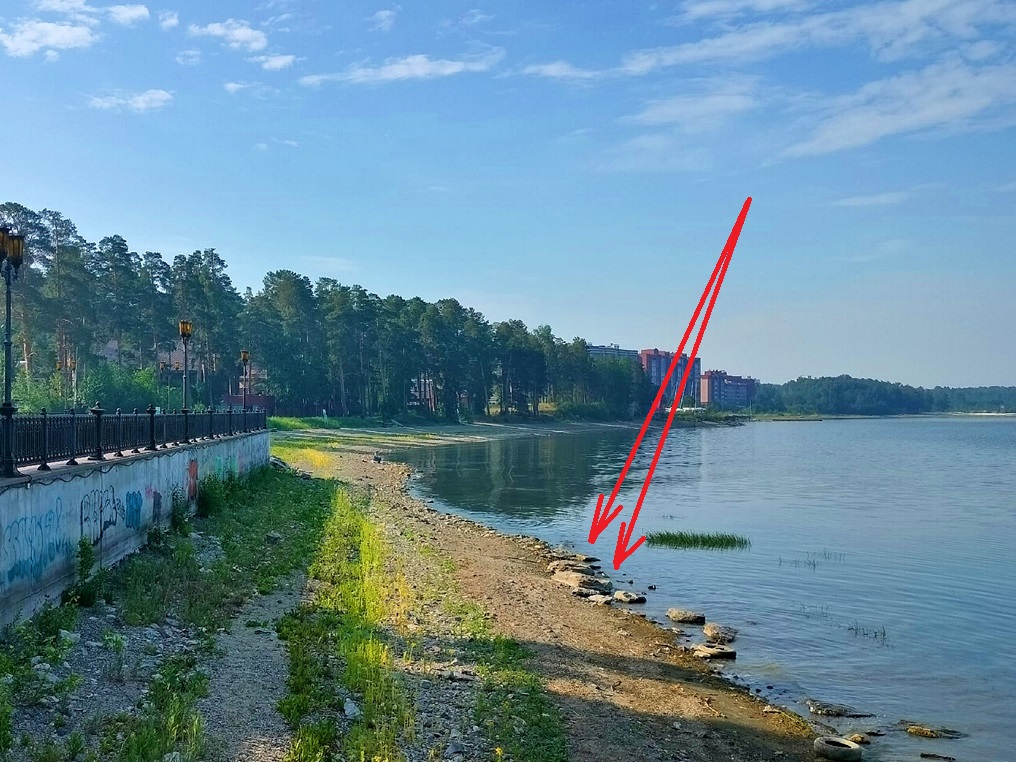 Год назад два валуна, которые мы выбрали в качестве ориентира возле набережной на "Нептуне", полностью оказались на суше (фото ниже).