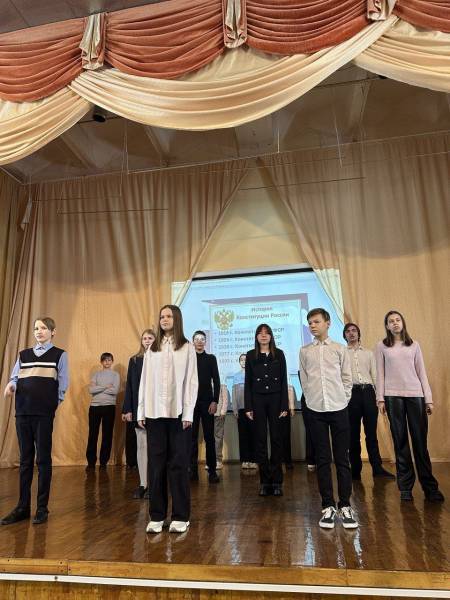 В школе № 104 состоялось «Посвящение в юнармейцы» в рамках мероприятия, приуроченного 30-летию Конституции.