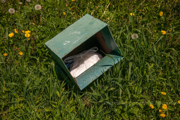 А ведь раньше почти все урны были одного образца, и, кстати, нам очень удачно повстречался один раритет из прошлого. Скорее всего, это единственный представитель, оставшийся с советского времени.