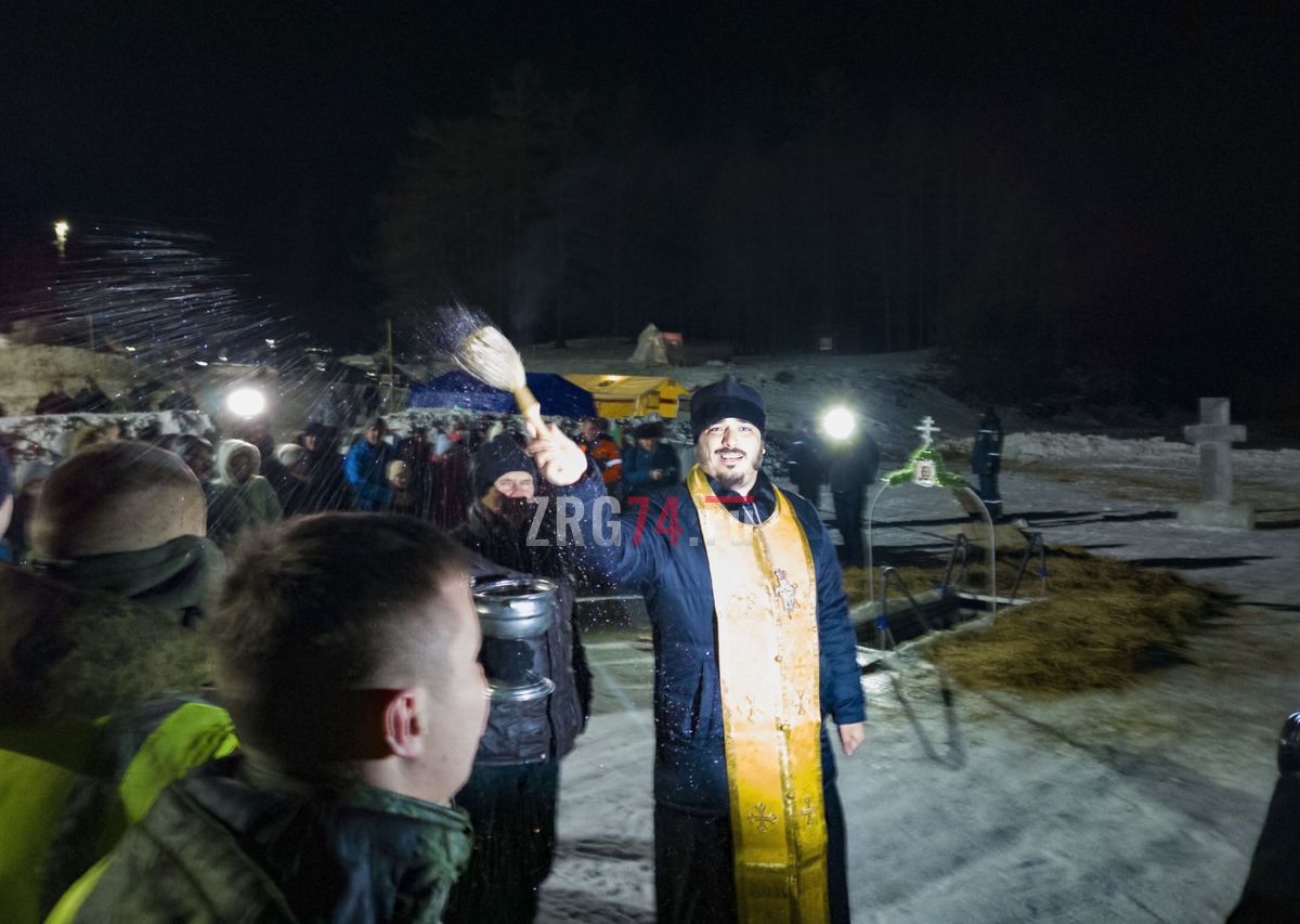 Чин Великого освящения воды совершил настоятель Петропавловского храма Златоуста протоиерей Октавиан. Он же напомнил о сути праздника: по преданию, 19 января Иоанн Креститель крестил в водах реки Иордан Иисуса Христа. В этот момент случилось чудо: разверзлись небеса, и глас Божий сообщил народу, что Иисус есть Сын его возлюбленный, а с неба сошёл Святой Дух в виде голубя.