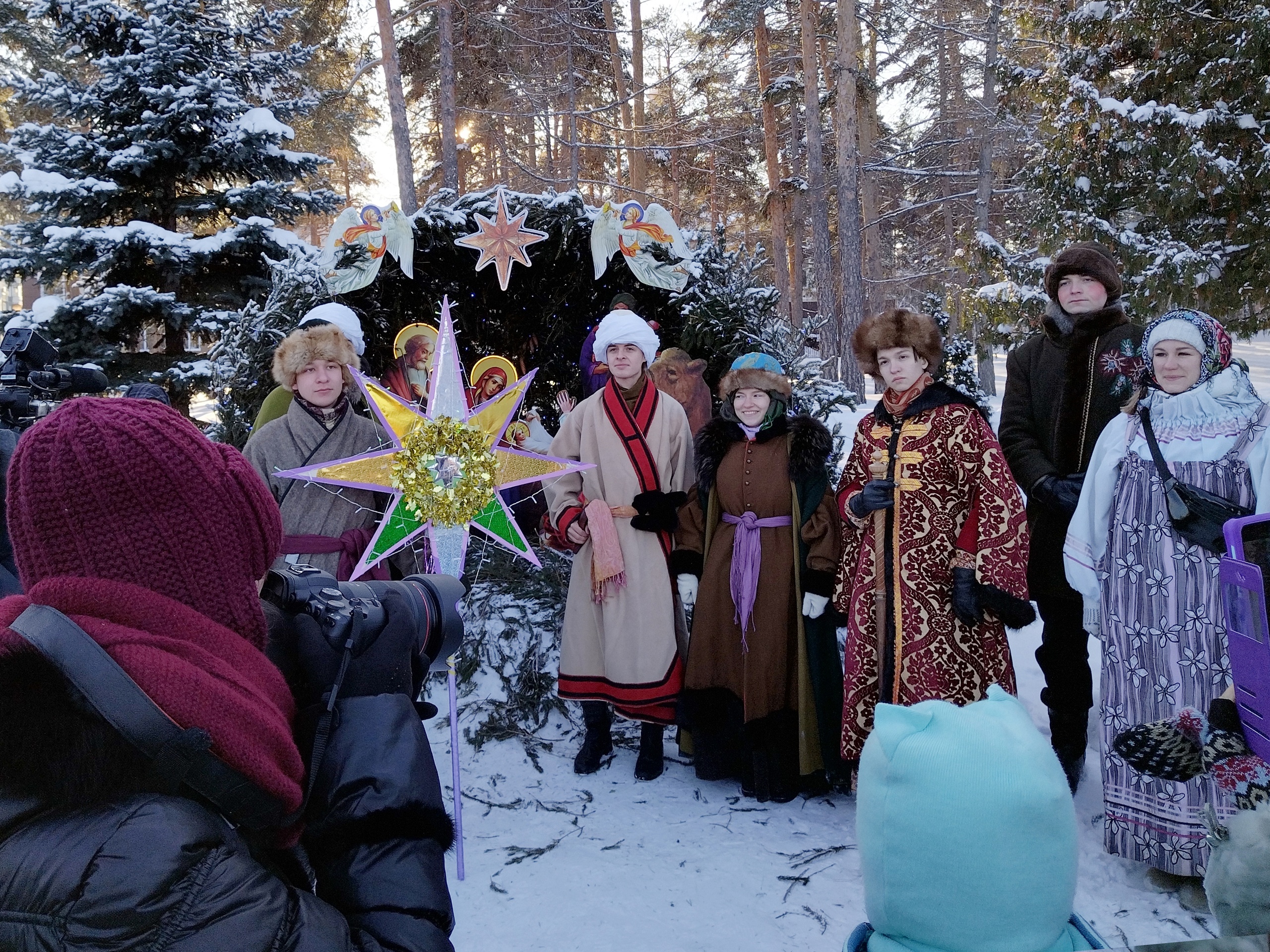 Началось празднование с шествия с Вифлеемской звездой к рождественскому вертепу.