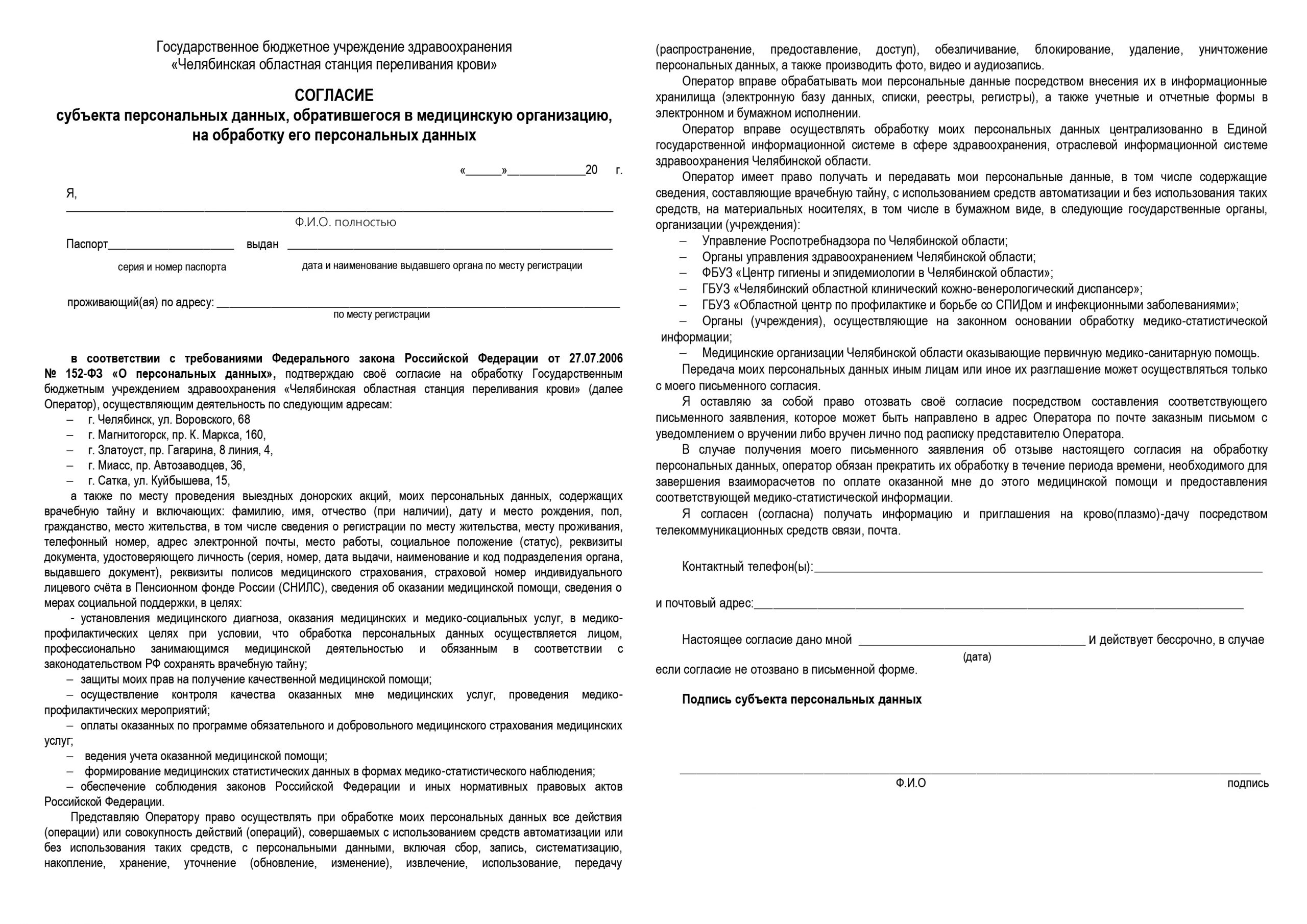 АНКЕТА донора СОГЛАСИЕ на обработку персональных данных ИНФОРМИРОВАННОЕ ДОБРОВОЛЬНОЕ СОГЛАСИЕ донора на медицинское обследование, донацию крови и (или) ее компонентов, исследование и хранение образцов донорской крови ИНФОРМАЦИОННОЕ СОГЛАСИЕ на проведение обследование на ВИЧ-инфекциюПоследние новости