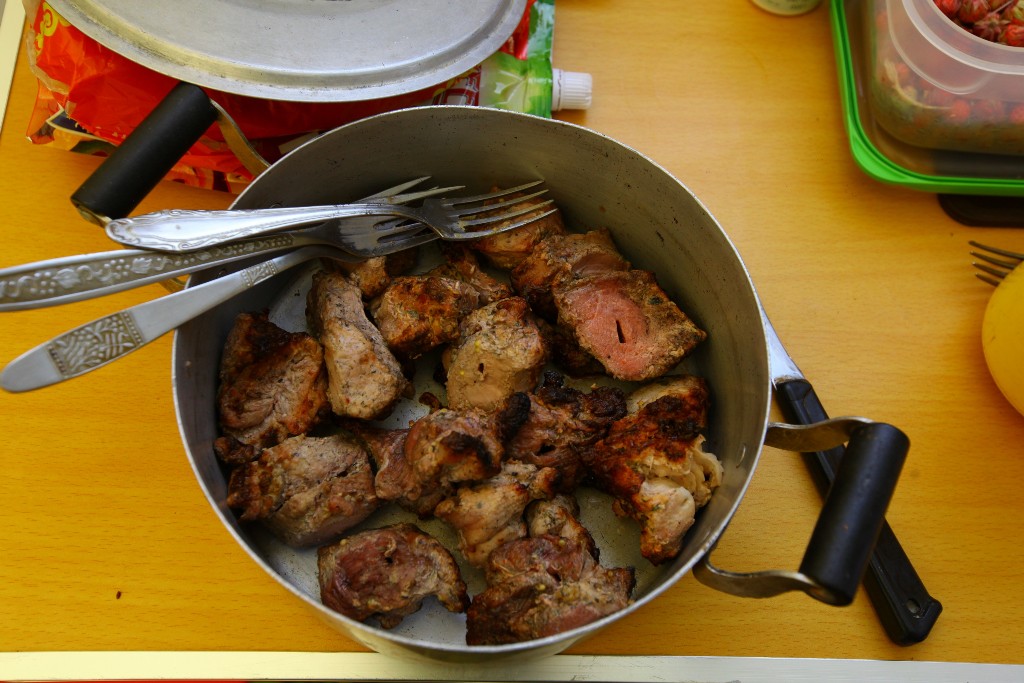 Есть шашлык лучше с большим количеством свежих овощей и салатов. Из напитков подойдут лимонады, фруктовые соки, свежевыжатые овощные соки, холодный чай, негазированная минеральная вода, сухие сорта вин.