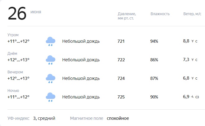 Синоптики обещают на завтра небольшие дожди. Днем температура поднимется до +13, а ночью похолодает до +11 градусов.