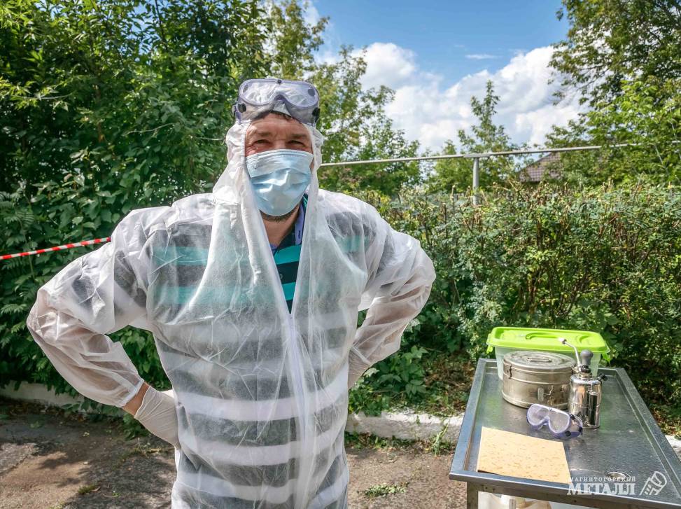 о происшествии на горячую линию, и в эпизодический очаг выехали специалисты магнитогорской ветстанции. На них – защитные одноразовые костюмы, закрывающие голову, специальная обувь, очки и перчатки. Развернув мобильный лагерь, ветврачи отправляются в импровизированный курятник, чтобы извлечь тушку погибшей птицы для взятия проб, необходимых для подтверждения диагноза.