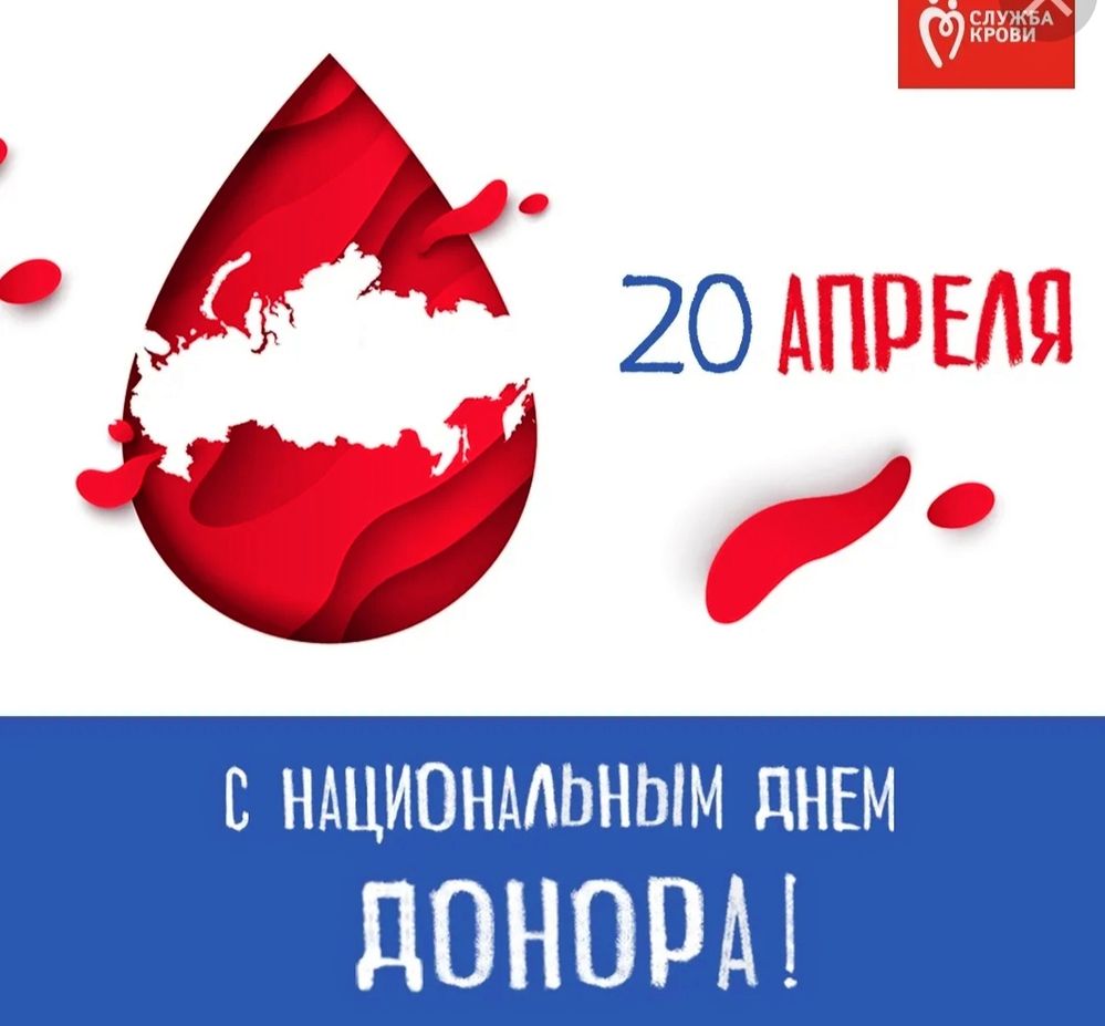 20 апреля – Национальный день донора в России. В этот день в 1832 году молодой петербургский акушер Андрей Вольф впервые успешно провёл переливание крови роженице с акушерским кровотечением. В память об этом событии в 2007 году Госдумой РФ был учрежден Национальный день донора.