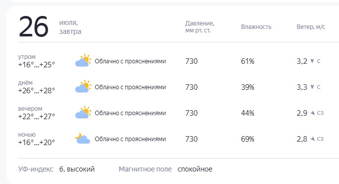 Днем потеплеет до +28, а ночью температура воздуха не опустится ниже +16 градусов.