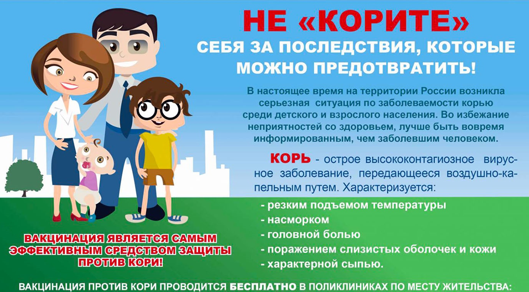 Надежным и эффективным методом профилактики кори является ВАКЦИНАЦИЯ.