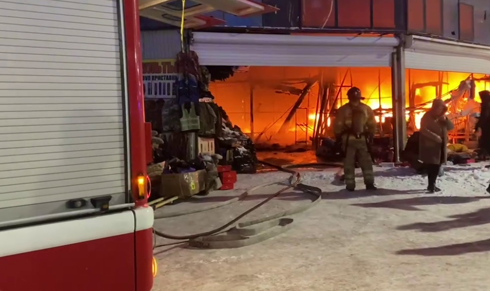 Ранее в МЧС сообщили о локализации пожара на трех из четырех участках. Рынок загорелся сегодня вечером. Прокуратура проводит проверку по факту ЧП.