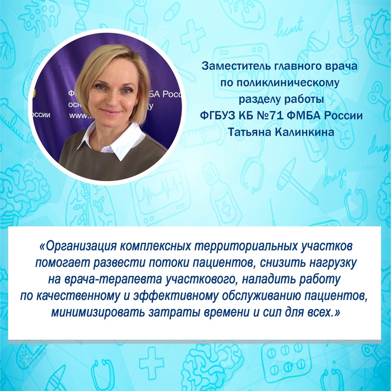 Сегодня, 17 октября, День участкового терапевта. О том, как обстоят дела в работе данной службы в городской поликлинике №1 мы побеседовали с заместителем главного врача по поликлиническому разделу работы ФГБУЗ КБ №71 Татьяной Калинкиной.